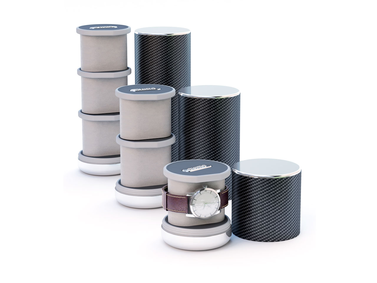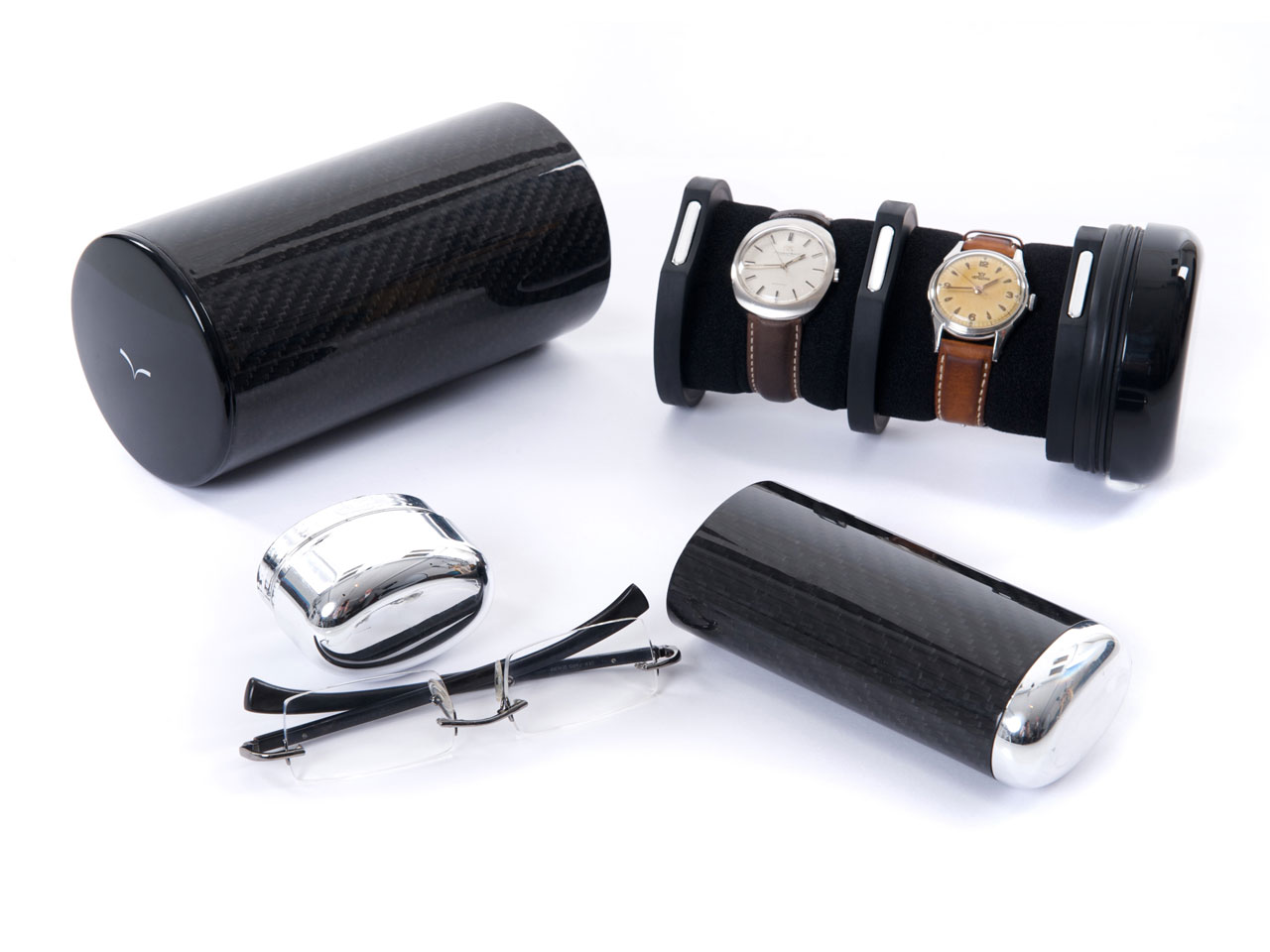 The modular watch case allows and number of watches to be transported securely. Simply detach or attach the internal watch pods and attach the carbon fiber tube that you wish to use.
